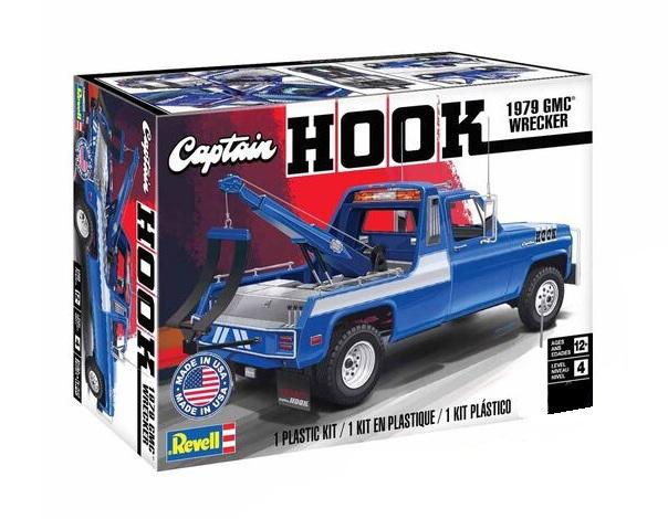 The unforgettable 1979 GMC Captain Hook marker the truck maker's entry into the wrecker business. With the help of Holmes, a leading supplier of wrecker equipment, Captain Hook combined GMC's C-3500-series can-and-chassis with a beautifully styled fiberglass wrecker body equipped with hydraulic boom and winch control. Revell's easy-to-assemble kit captures the rig's head-turning design that helped make GMC truck centers THE place back in the day.
