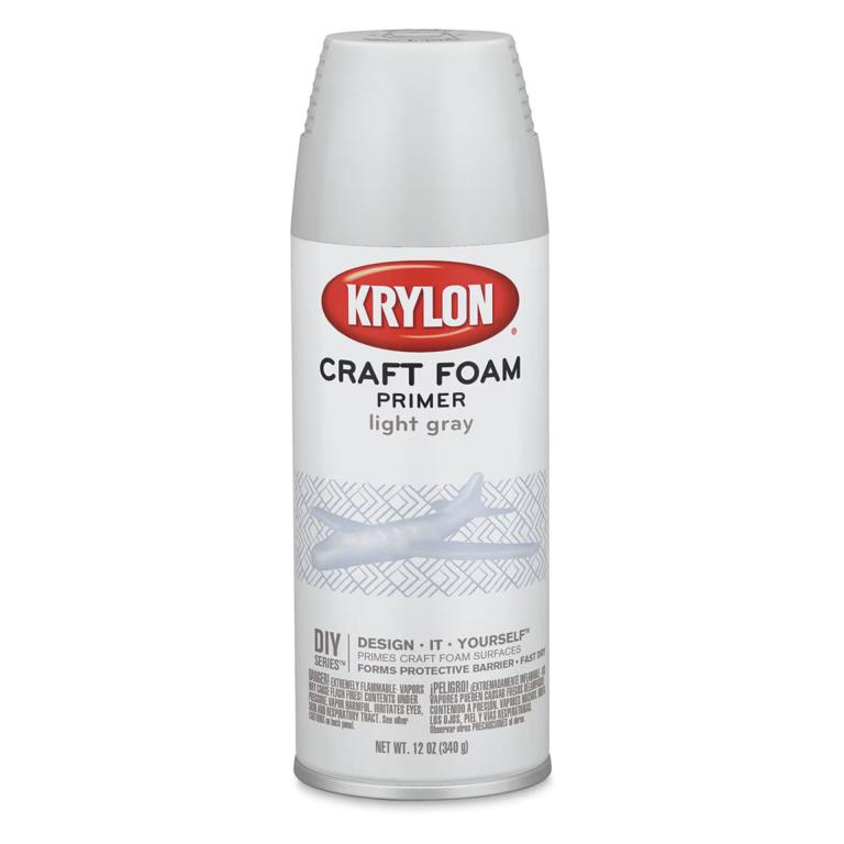 Foam materials, including Styrofoam, can be difficult to paint, but this fast-drying primer ensures true and even color and promotes excellent adhesion. Pretreat your surface with the primer to create a protective barrier between the foam and paint — no more melted or damaged foam! The primer is Light Gray. Because it sprays gray, the Light Gray primer is easy to see on white foam surfaces. Krylon Craft Foam Primer dries to the touch in just 30 minutes and is dry to handle in two hours. 12 oz can.